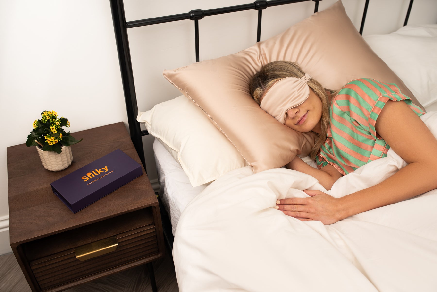 Siilky pillowcase combines the finest Mulberry Silk with the moisturizing and hydrating properties of Hyaluronic Acid and Aragon Oil giving you an 8 hour beauty treatment.